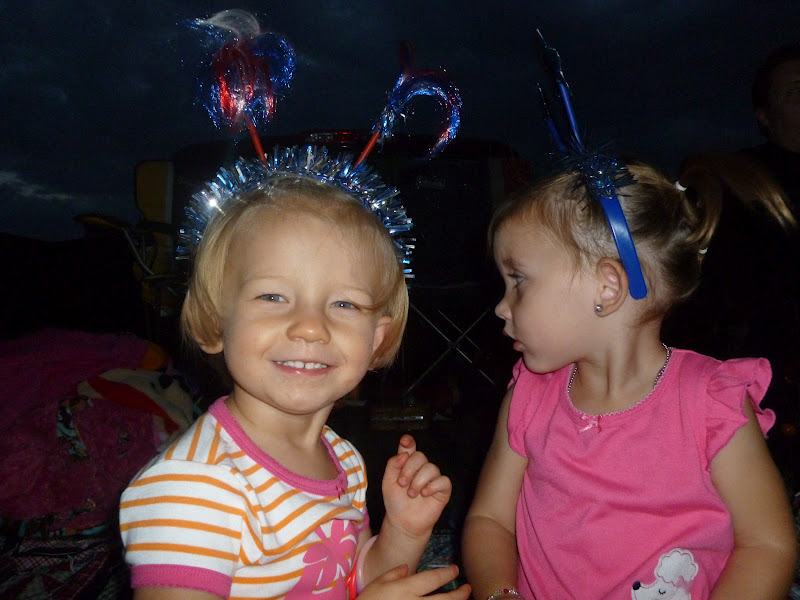 We had the best 4th of July this year! We had dinner with our good friends the Broadhead's and the Griffiths. Clint and his dad smoked us the most AMAZING ribs and pulled pork. It was so delish! We had a TON of food and we enjoyed it all! The kids had a blast playing outside. We then headed up to the old air port to enjoy the city fireworks. Tip and Clint put Tips truck up there early so we had prime seating! The fireworks were awesome and some of them were right above us. Lexi loved and hated them. She didn't like the close ones and would say, "Mom those scare me" But by the end she was cheering. Rav amazingly slept through all of them! It was so, so fun! It was relaxing and entertaining! Best kind of holiday!